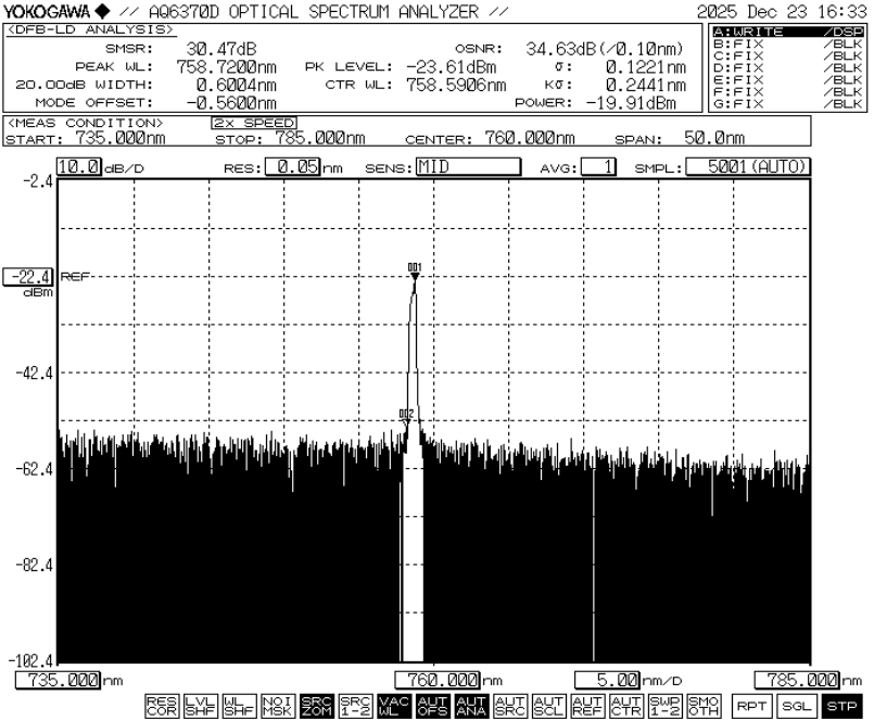 | Longueur d'onde centrale | λc | TL = 25 ℃ CW | 758 | 760 | 762 | nm |