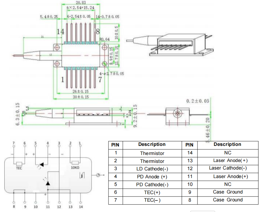 La diode laser DFB 760 nm 10 mW pour module de détection d'oxygène O2 est une diode laser rentable et hautement cohérente. La puce à diode laser DFB est emballée dans un boîtier papillon 14 broches hermétiquement fermé standard avec TEC et PD intégrés.